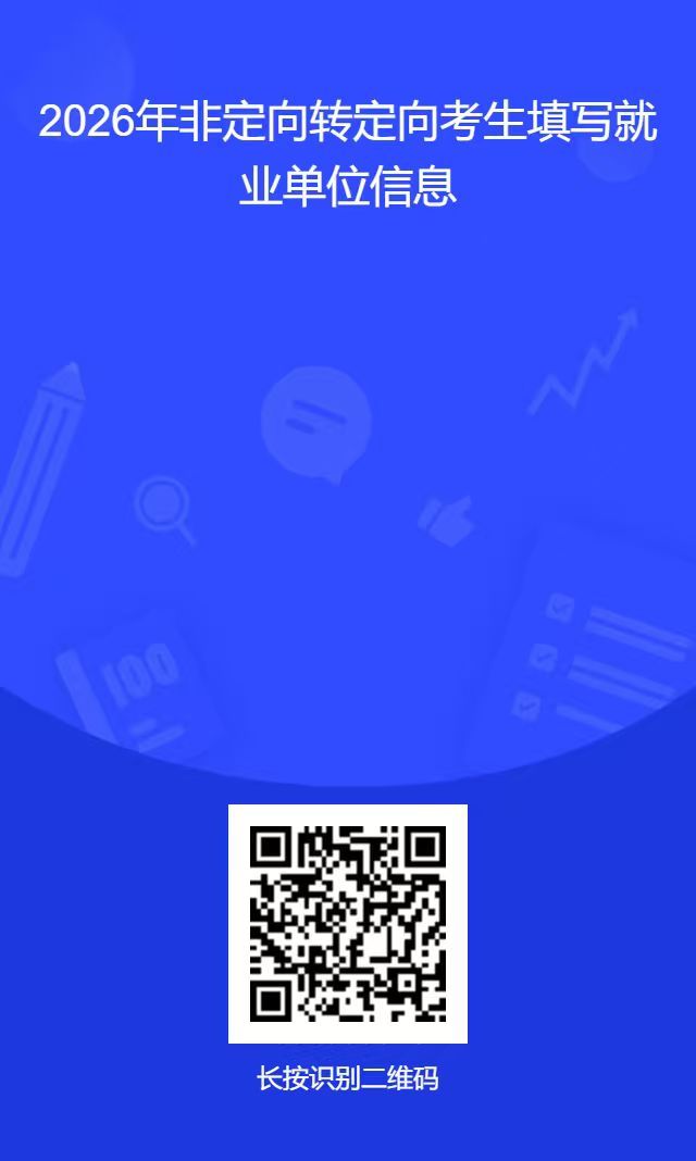 二、根据教育部非全日制研究生录取的有关要求及我校招生章程及复试工作方案的有关规定,非全日制考生的录取类别为定向就业,部分原报考非定向的调剂考生需补充定向就业单位名称和定向单位所在地码(详见附件2),请各位考生于4月23日前扫码填写,录取信息上报后,将不能修改,务必准确填写。