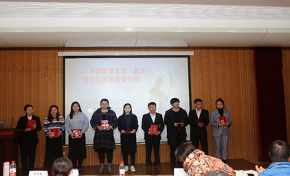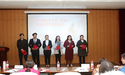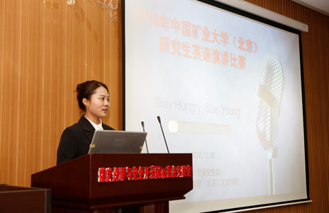 我校研究生英语演讲比赛分初赛和选拔赛两个阶段举行。初赛采取三分钟定题演讲,题目为“Stay hungry . Stay young”。 大赛共有56名选手报名,经过初赛选拔,17名来自我校不同学院的比赛选手成功晋级选拔赛。选拔赛包括演讲和提问两个环节。经过激烈竞争和紧张角逐,2名同学获得一等奖,6名同学获得二等奖,9名同学获得三等奖。赛后学校对获奖同学进行了表彰,并颁发了获奖证书和奖品,获得一等奖的2名同学将代表我校参加12月初举行的北京市研究生英语演讲比赛复赛。